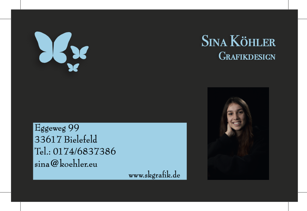 Diese Visitenkarte habe ich ebenfalls mit dem Programm Adobe InDesign erstellt. Sie passt zwar nicht zum Thema, jedoch dachte ich, dass sie nochmal einen guten Einblick in diese Art von Entwürfen gibt, die ich mit dem Programm gemacht habe.